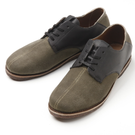 一躍人気品番となったタカ・ハヤシのオリジナルデザインモデル『Derby』のビリーカークのテイストリビルドバージョン。カラーがツートンカラーになりサドルシューズの様な趣になったことや、ボディ全体に施されていたトライアングル・パンチは廃止されています。もちろん外側にはVANSロゴは一切無く、タカ・ハヤシマークもインソールにしかありません。内側はつま先まで革が張られており、完全な二重構造のとても凝ったVANSです。