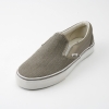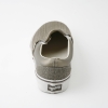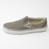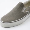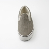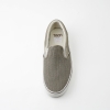 マハラム社の生地を使用したスリッポンです。ボディは数色の色糸を複雑に織り交ぜたランダムストライプ柄の生地を使い、パイピングやサイドの切り替えはシャンパンゴールド色のナイロンです。