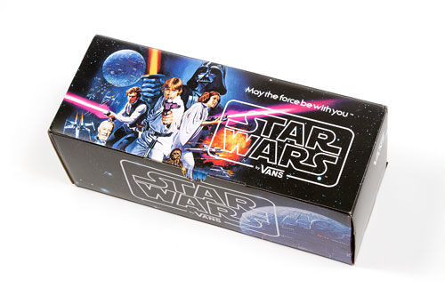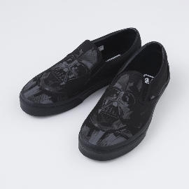 スターウォーズの人気キャラクター、ダース・ベイダーが描かれたスリッポンです。ベースカラーもゴムも靴底も全てブラック。ヒールパッチもVANSフラッグタグも全てブラック。さらに大迫力の両足ダース・ベイダープリント。フォースの暗黒面に堕ちてしまったアナキンの悲哀が伝わってくるVANSです。