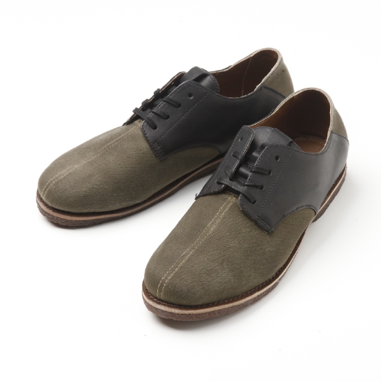 キャンバス × レザーにクレープソールの組み合わせの『Derby』。見た目はプレーントゥシューズ、履き心地はスニーカー。クッション性も良好で、カジュアルからドレスまで幅広くコーディネートできるスペシャルな一足。BOX、シューズ用のキャリーバッグ共にBilly Kirk × Taka Hayashiのスペシャル仕様。