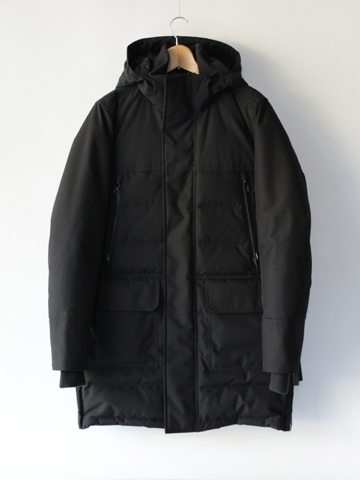 ブラックレーベルのロングコートタイプのダウン。ファブリックに2L Herringbone Melangeがマットな雰囲気です。また、肩にディスクワッペンの無いモデル(ラチチュード)です。