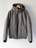 こちらも大人なブラックレーベルのショートタイプのダウンです。ファブリックはミックスグレーの2L Herringbone Melange、肩にディスクワッペンの無いラチチュードモデルです。