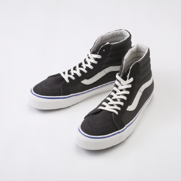 OGシリーズのスエード×キャンバスのSk8-Hi。通常のSK8よりすっきりしたデザインの人気型番。ヒールパッチやサイドラバーのゴムの巻きなども当時のVANSを再現しています。
