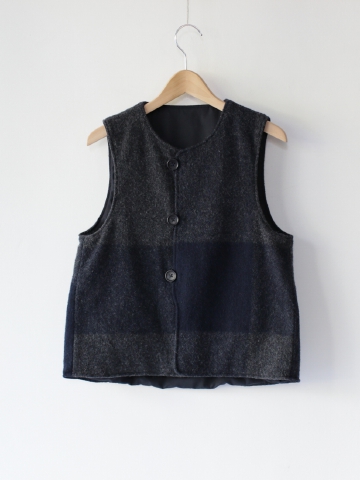 リバーシブルのベストです。今シーズンの代表柄のBig Plaid MeltonとネイビーのNyco Ripstopの両A面のコンビです。