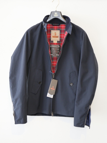 バラクータ社のG9は今から70年以上昔にイギリスのマンチェスター郊外でジョン・ミラー兄弟によって作られました。G9のGはゴルフ、9は9番目に展開したという意味です。便利なショート丈でコットン生地には防風・撥水加工が施してあり、背中のアンブレラヨークはスポーツの時も動きやすく、裏地にはフレーザー・タータンを使用したこの製品は、後にアメリカで放映されたテレビ番組の出演者の着用をきっかけにハリントン・ジャケットと呼ばれるようになります。以降、数多くの著名人に愛された大ベストセラーです