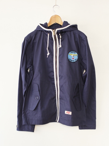 コットンのウィンドブレーカー。フロントのホワイトテープにスヌーピーのワッペンが雰囲気です。