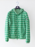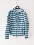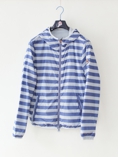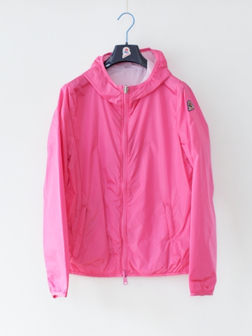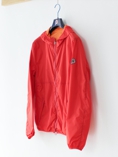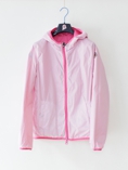 リバーシブルのウィンドブレーカーのレディースサイズモデル。こちらもポケットに入れ込むと小さなポーチになります。