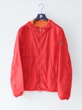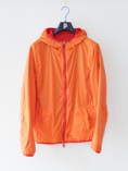リバーシブルのウィンドブレーカー。ショート丈でややタイトな着やすいデザインです。また、パッカブル仕様でポケットに入れ込むと小さなポーチになります。