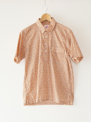 ユニークな柄がプリントされたプルオーバーシャツ。フラップ付きの胸ポケットが◎です。