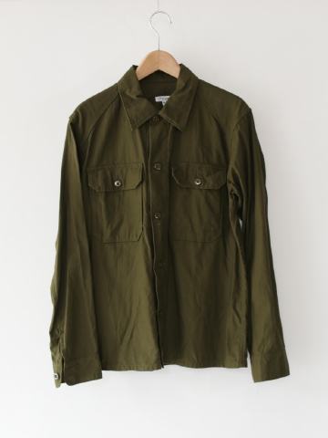 裾がスクエアカットのフィールドシャツ。やや厚手の生地でシャツジャケットとしても着ることができます。