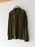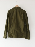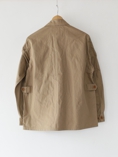 ゆったり目でややショート丈のサファリシャツタイプのジャケット。同色のボタンや硬めのファブリックの感じが雰囲気です。