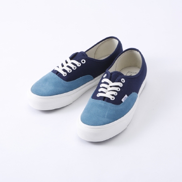 VANS Vault OGシリーズのオーセンティックではめずらしくツートン配色でスエード×キャンバスです。少し厚めの生成り色のソールやコットンのシューレース、VANSフラッグのカラーなどもちろんOG仕様です。