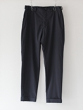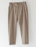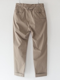 モデル名の通り綿密に織られたファブリックで作られた、ゆったりした薄手のコットンポリパンツ。シンチバックが特徴的です。
