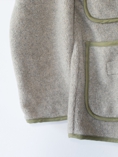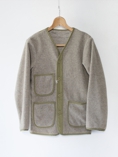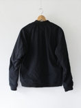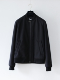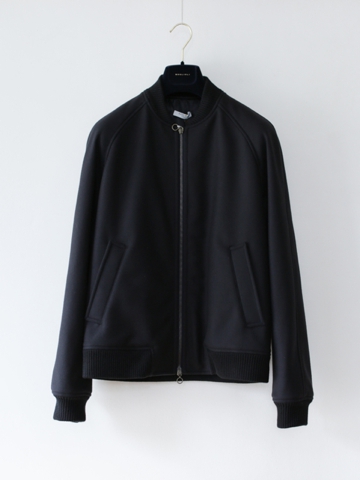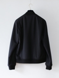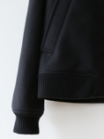 ウールベースのファブリックを使用したスタジャンタイプのジャケット。編み込みのリブの内側と外側でテンションを変えるなど、実はかなり凝った仕様です。