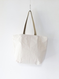 ロゴプリントが目を引く10オンスのキャンバストート。持ち手の部分はナイロンです。