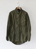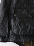 Barbourらしいオイルジャケットのブロンプトンとのコラボモデル。さわってもベタつかないドライワックスに立ち襟と胸の斜めポケットが特徴。また脇の部分のベンチレーションZipがユニークなモデルです。