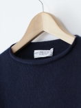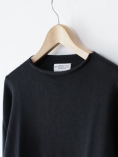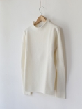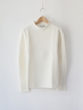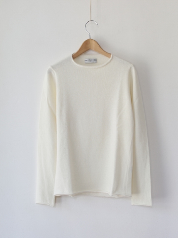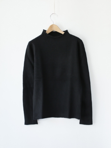 Wool 75 %/Angora 25 %のマザーハンドアルチザンではスタンダードなファブリッックを縮絨加工(水で湿らせて熱・圧力を加え、長さと幅を縮めて組織を密にする加工)したハイネックモデル。製作に恐ろしく手間がかかっています。