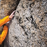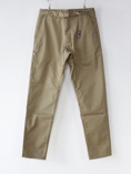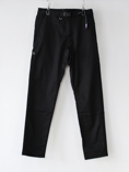 細身でキレイなシルエットのスラックス風のクライミングパンツ。ウェスト部分のウェービングベルトが上着などで隠れているとウールスラックスと見分けがつかないキレイなシルエットですが、クライミングパンツらしく股下のガゼットがあり普段のリラックス用にも最適です。