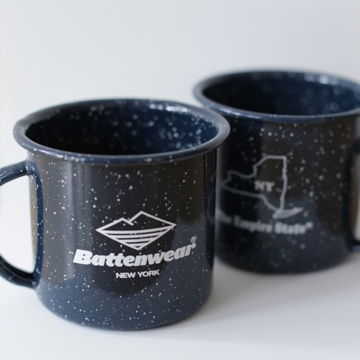 バテンのホーローマッグカップです。柄はEmpire StateとGolden Stateの2種類。紙の箱に入っています。