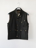 薄手のオイルドクロスのベストです。インターナショナル・ジャケットのような斜めのポケットが特徴です。