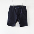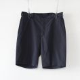 人気定番の伸縮性のあるコットン/ポリ・クールマックスのファブリックの細身のショーツ。フロント右のキーストラップは原型のWebbing Belt Pants譲りです。