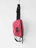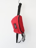 シンプルな構造のウエストバッグ。ジッパーは前後に付いています。