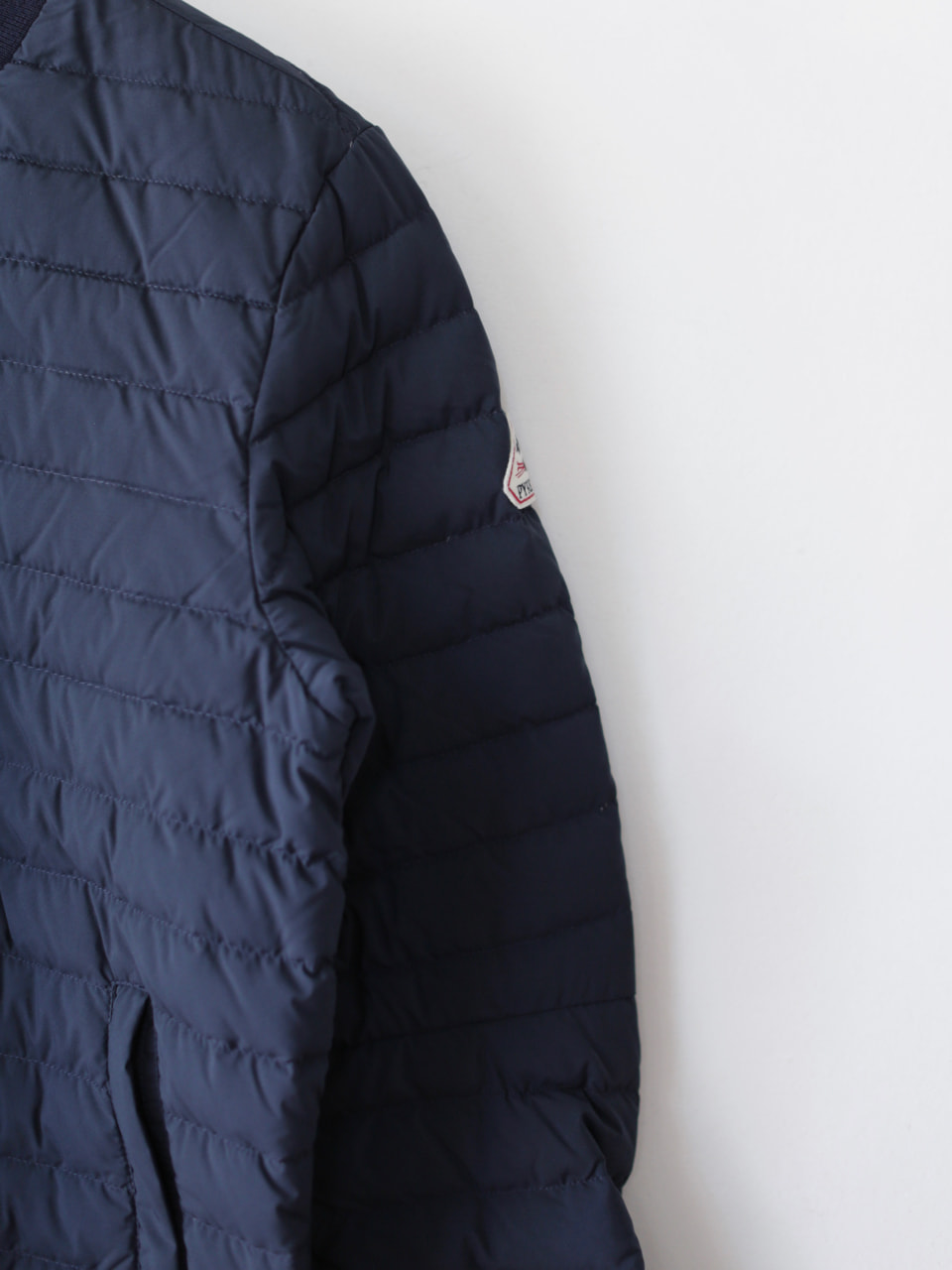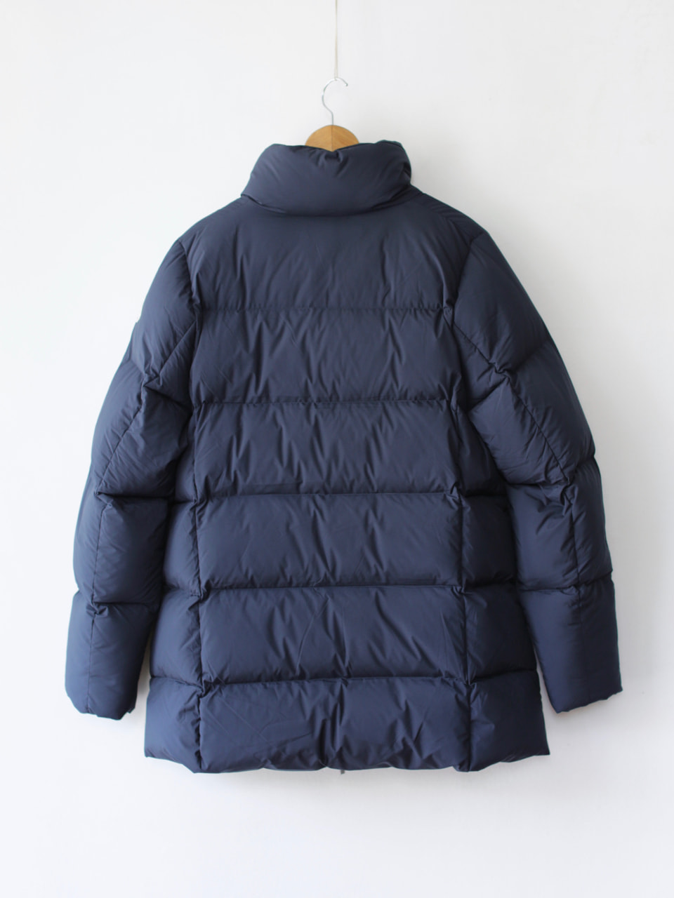 フードのないシンプルなハーフコートです。着やすいスムース生地に実は850フィフパワーのハイスペックモデルです。