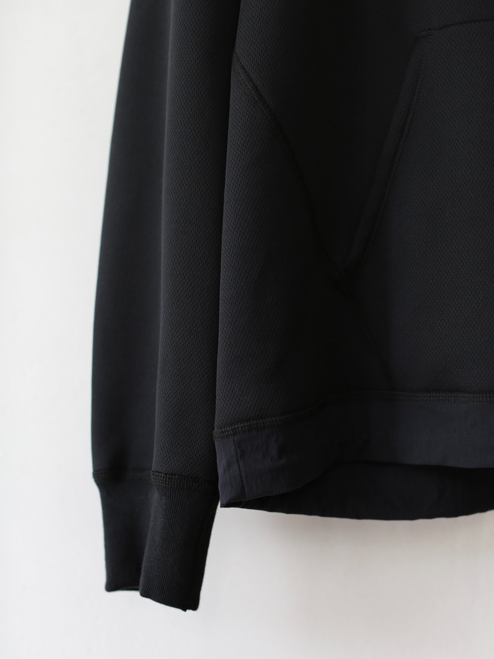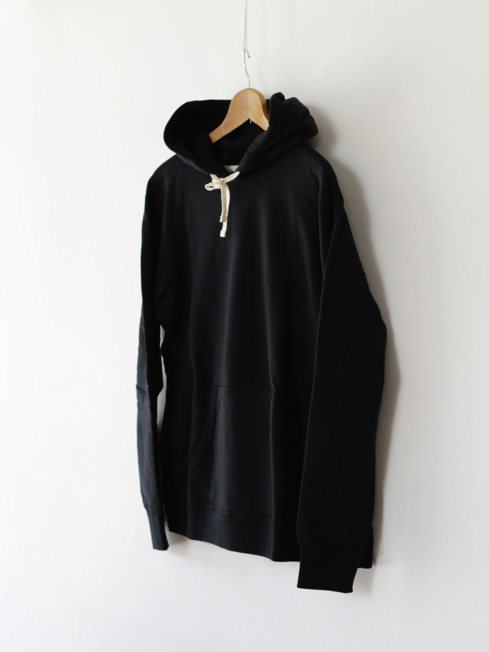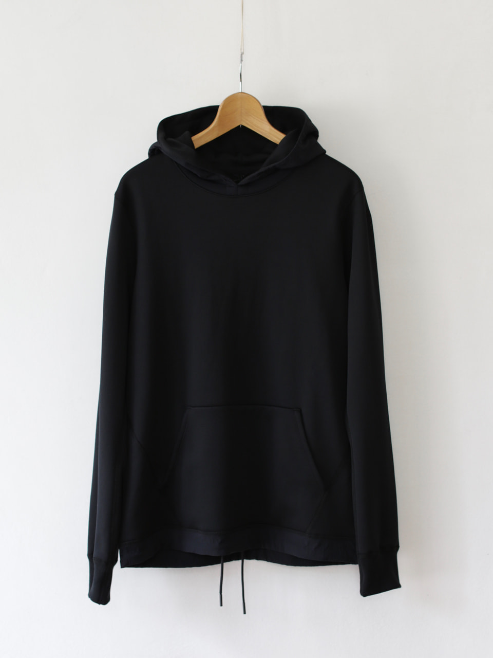 ブラックレーベルシリーズのボンディング(2枚貼り合わせ)生地を使用したプルオーバパーカ。一見ジャージ生地ですが、内側がコットンなので快適な着心地です。