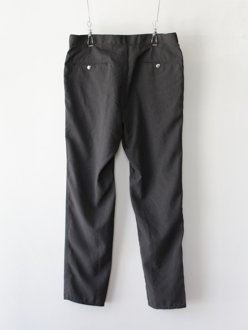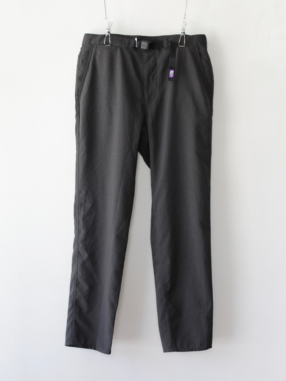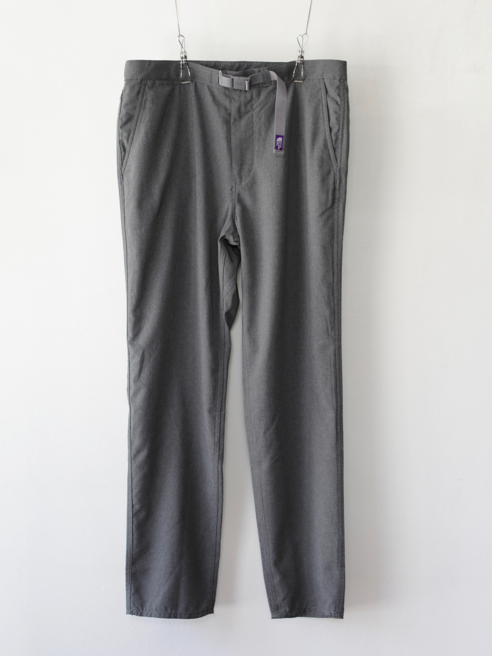 細身でキレイなシルエットのスラックス風のクライミングパンツ。ウェスト部分のウェービングベルトが上着などで隠れているとウールスラックスと見分けがつかないキレイなシルエットですが、クライミングパンツらしく股下のガゼットがあり普段のリラックス用にも最適です。