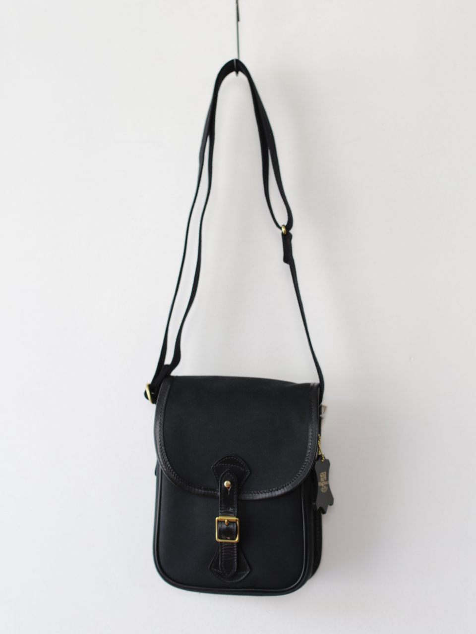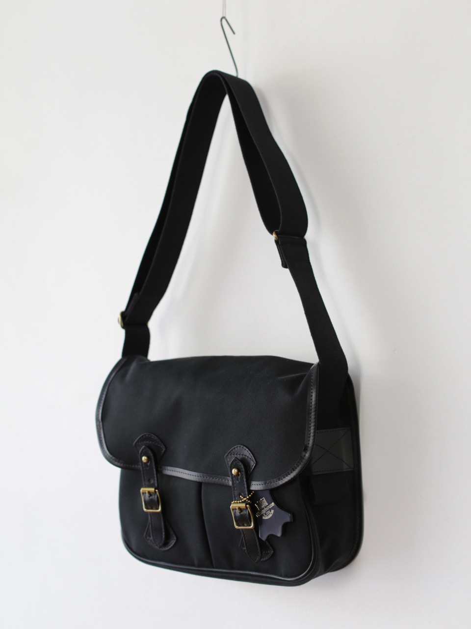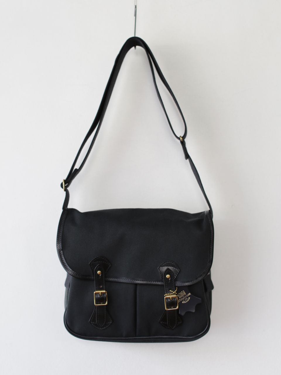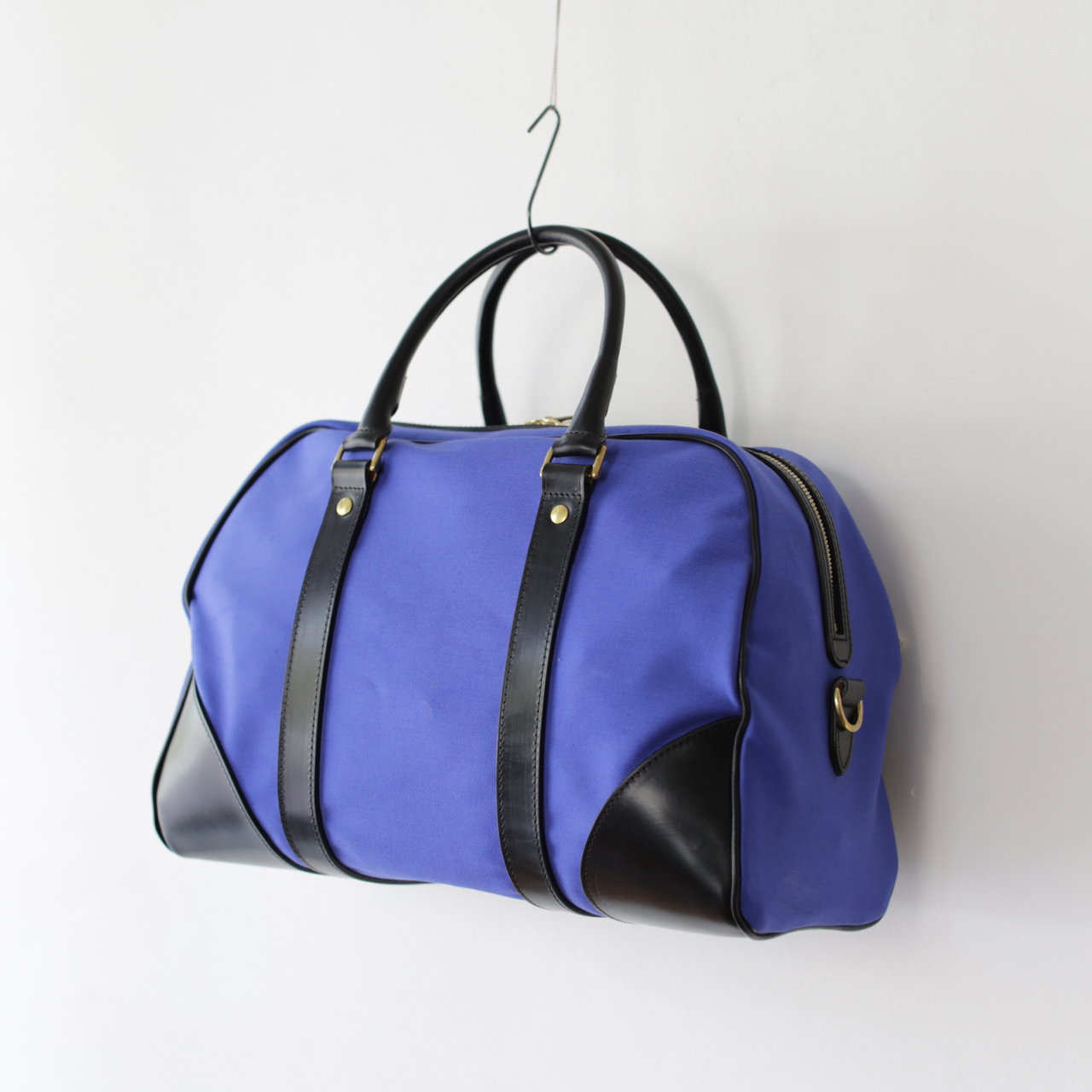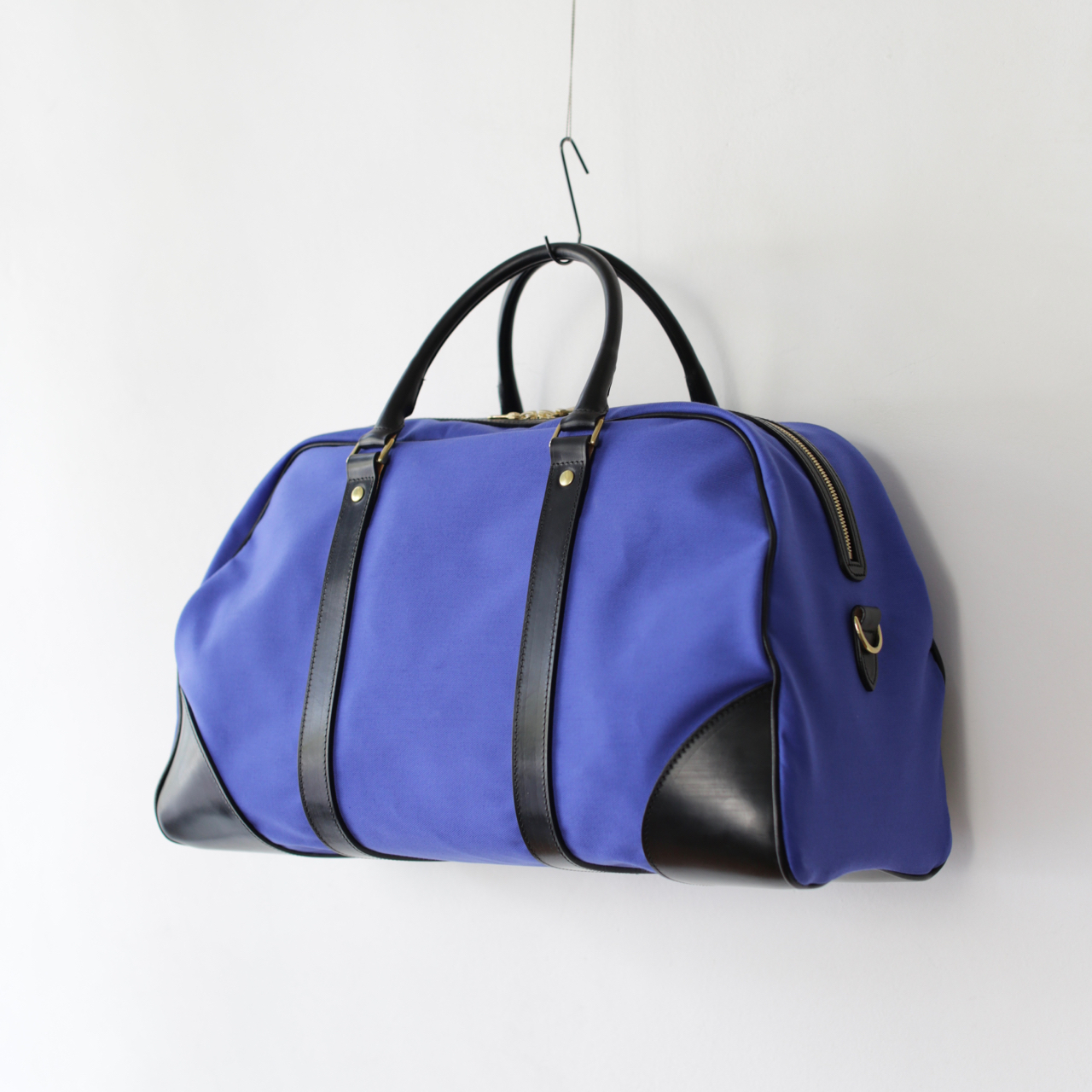 ポリウレタン皮膜をサンドイッチしたコットンツイルキャンバスと、ブライドルレザーのコンビのクラシックなボストンバッグです。また、サイズ調整も可能なコットン製のショルダーストラップも付属しています。