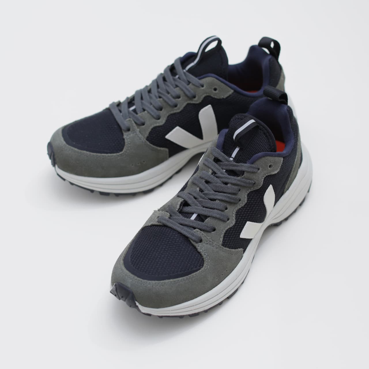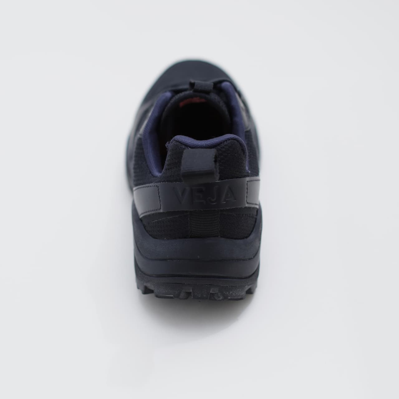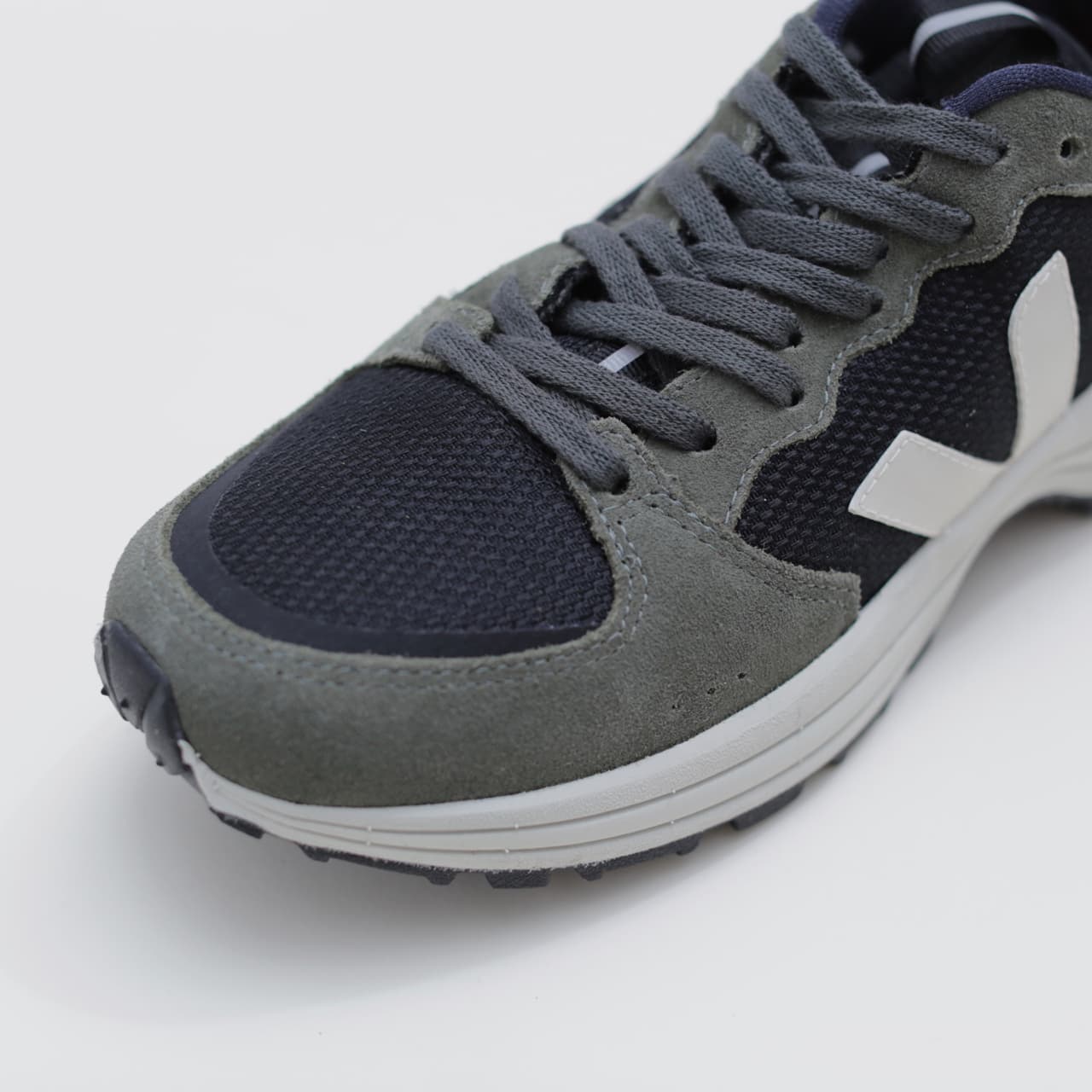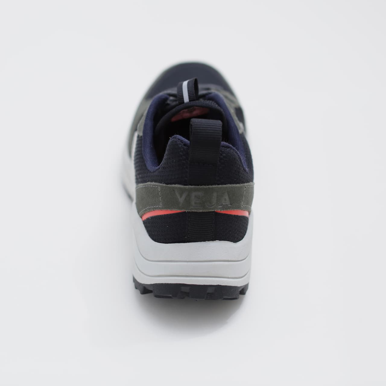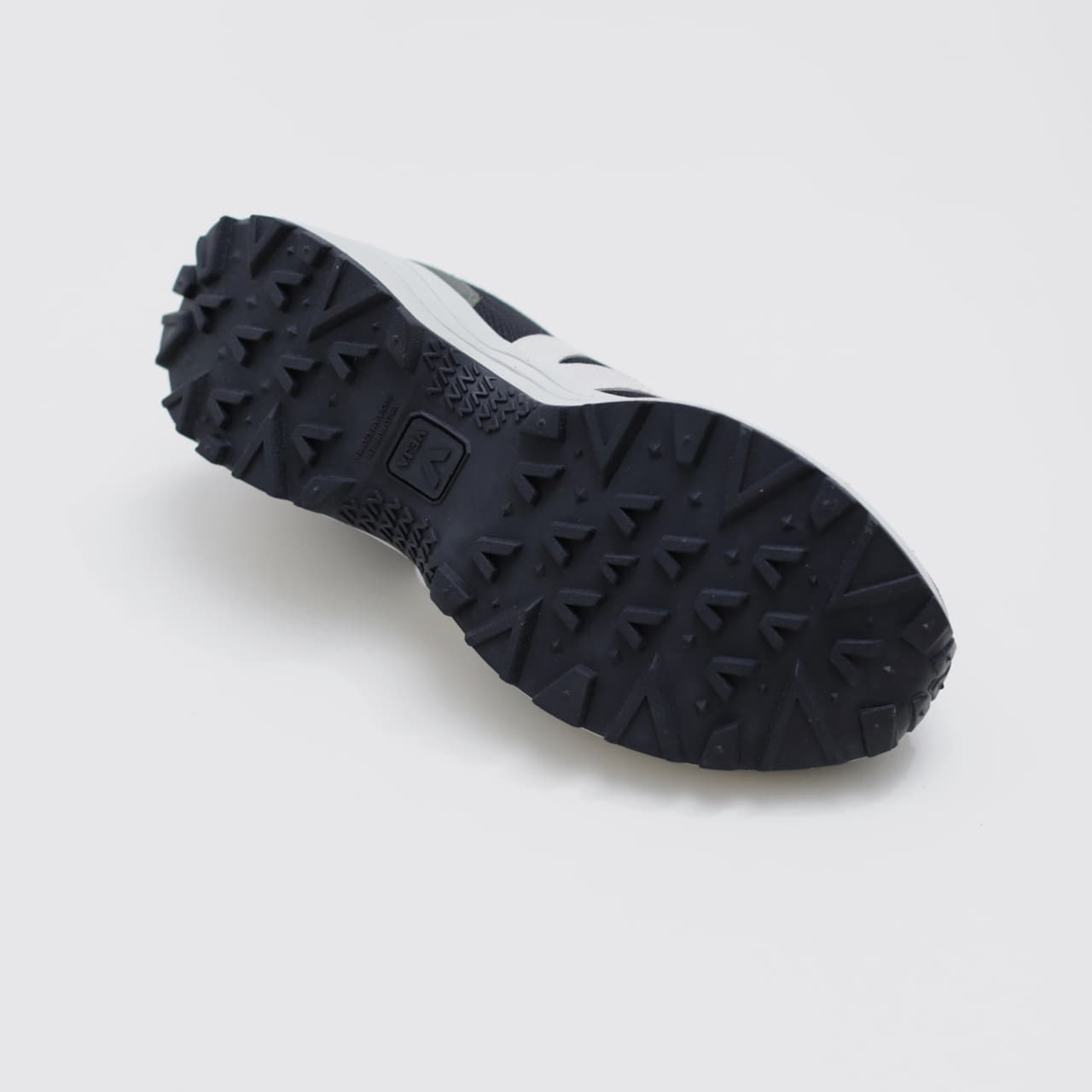 Veja・ランニングプロジェクトのトレッキングタイプの新モデル。接地振動から足の関節を保護する厚手のアウトソールの『L-Foam』は50%が天然ゴムで作られています。ボディはリサイクルペットボトルを再利用して生産されるB-Meshファブリックが使用されています。また、ライニングもオーガニックコットンとリサイクルポリエステルが使用されています。