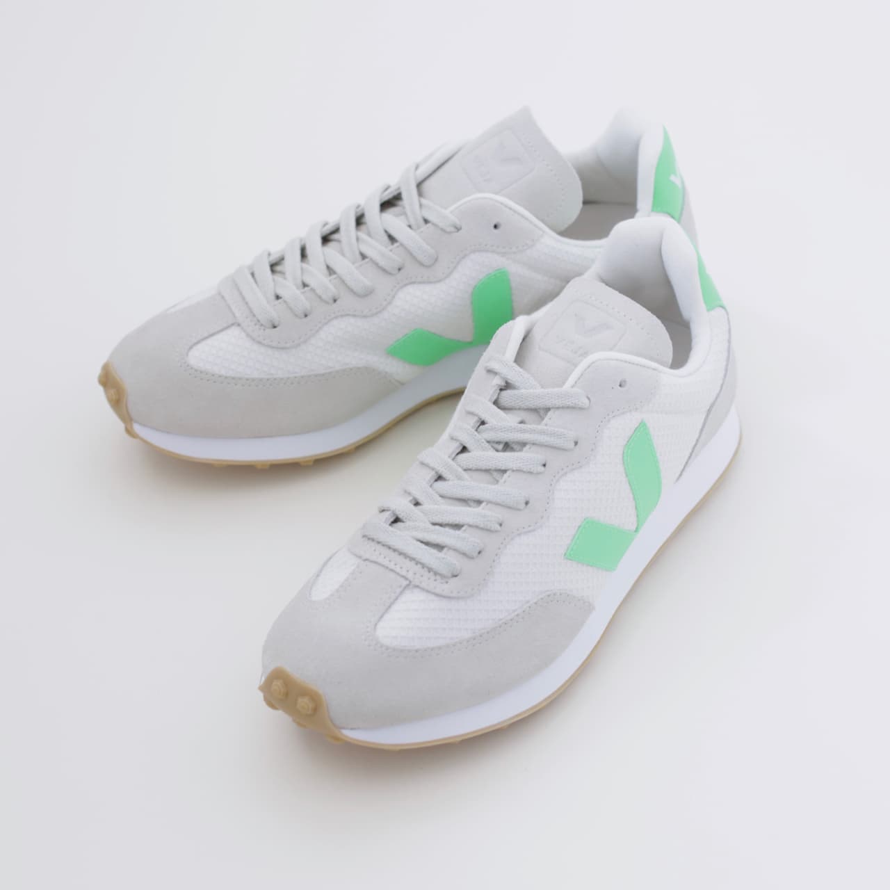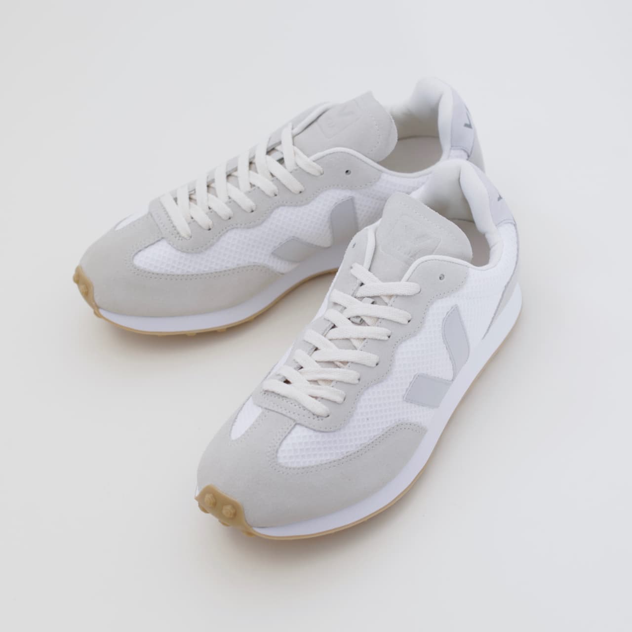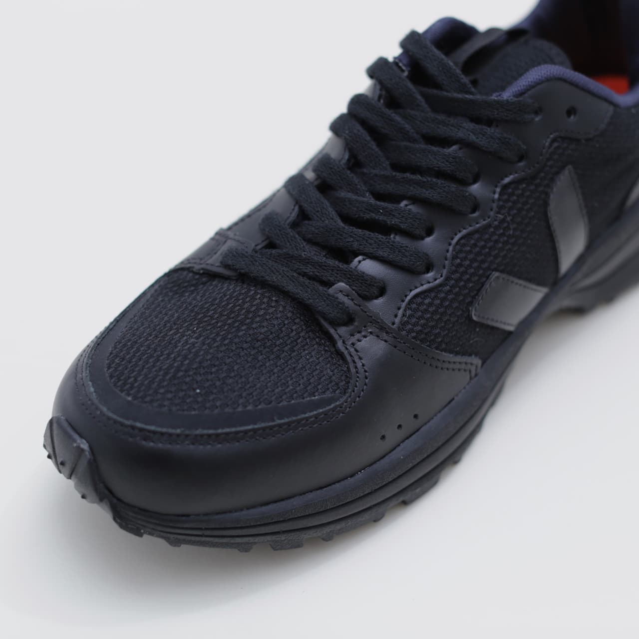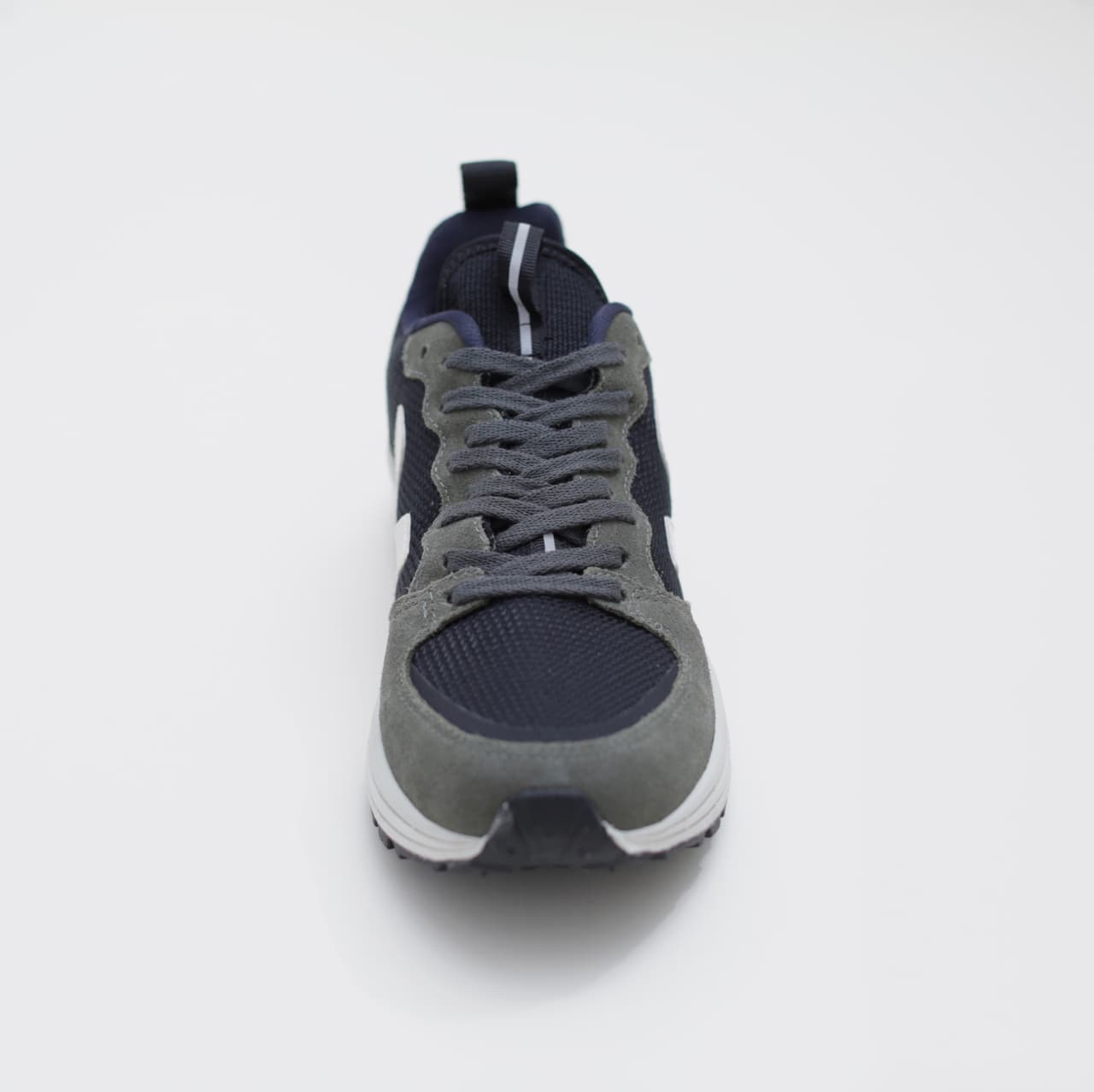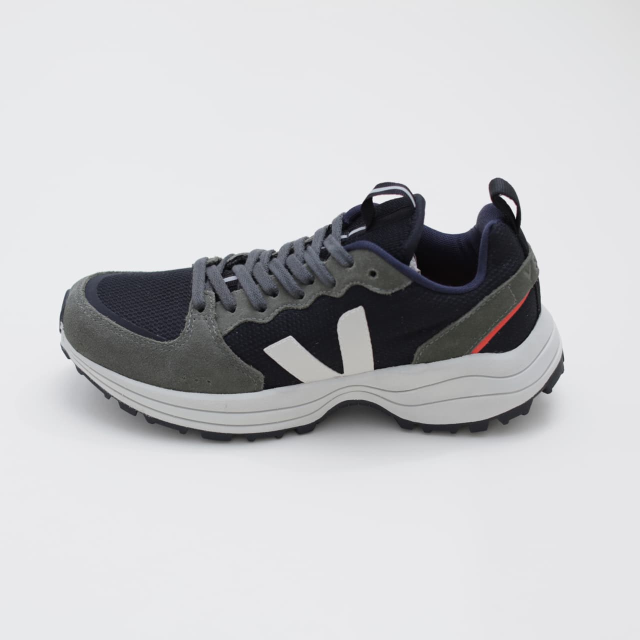Veja・ランニングプロジェクトのトレッキングタイプの新モデル。接地振動から足の関節を保護する厚手のアウトソールの『L-Foam』は50%が天然ゴムで作られています。ボディはリサイクルペットボトルを再利用して生産されるB-Meshファブリックが使用されています。また、ライニングもオーガニックコットンとリサイクルポリエステルが使用されています。