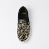 ブラックスエードの上からジャングルフラワー柄を豪華に全面刺繍したスリッポンです。多色使いで立体感があり、大迫力の仕上がりとなっています。