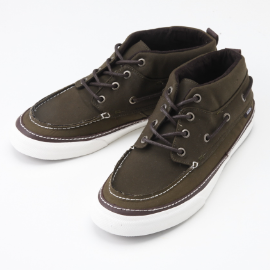 オイルドクロスの防水ジャケットを製産する事で有名な、ロイヤル・ワラントを持つイギリスを代表するアウトドアブランド『 Barbour 』とサウス・カリフォルニアのスケート&サーフカルチャーをルーツにVANSが2009年にスタートさせた『 Vans California Collection 』のコラボレーションです。バブアーらしくベース生地はセージグリーンのオイルドクロスやブラウンレザーで、インナーライニングはコーデュロイが使われています。インソールにはバブアーを象徴するタータンチェックとバブアーのタグが付けらたダブルネーム仕様のスペシャルモデルです。