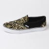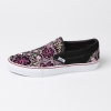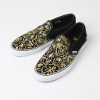ブラックスエードの上からジャングルフラワー柄を豪華に全面刺繍したスリッポンです。多色使いで立体感があり、大迫力の仕上がりとなっています。