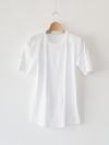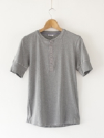 『カールハインツ』のクルーネックの半袖モデル。ヘンリーネックと同じくファブリックの素材は高級綿が使用された贅沢な一枚。ネックの内側のブルーラインがシーサーらしいTシャツです。
