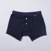 シーサーの中でも定番のカールハインツのボクサーショーツです。カットソーと同じくファブリックの素材は高級綿のマココットンにフロントボタンは貝ボタン仕様。ウェスト部分とフロントのテープにシーサーらしいブルーのラインが入っています。包み込む様な履き心地にファンも多いアンダーウェアです。