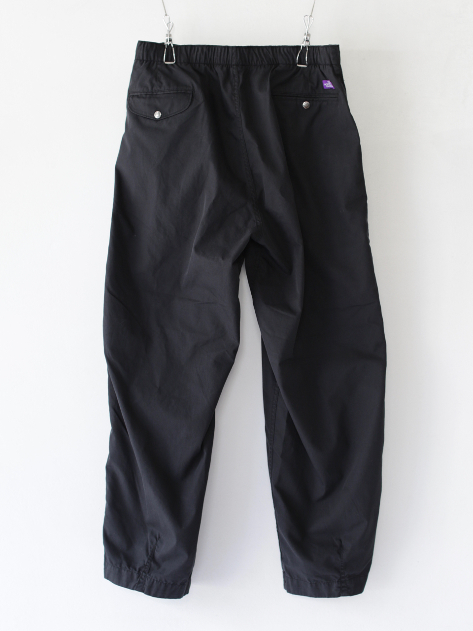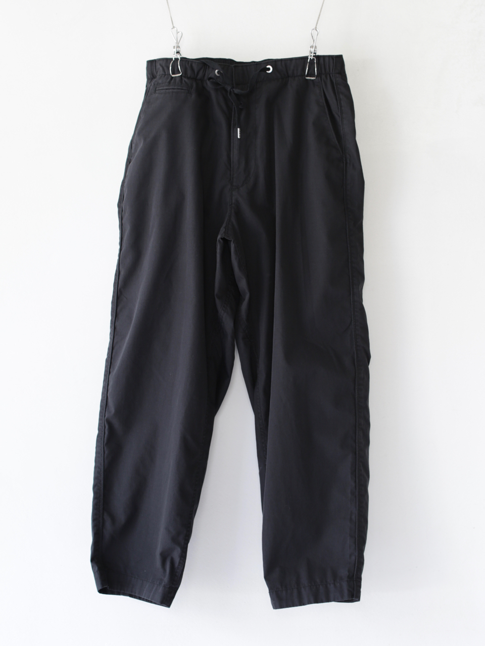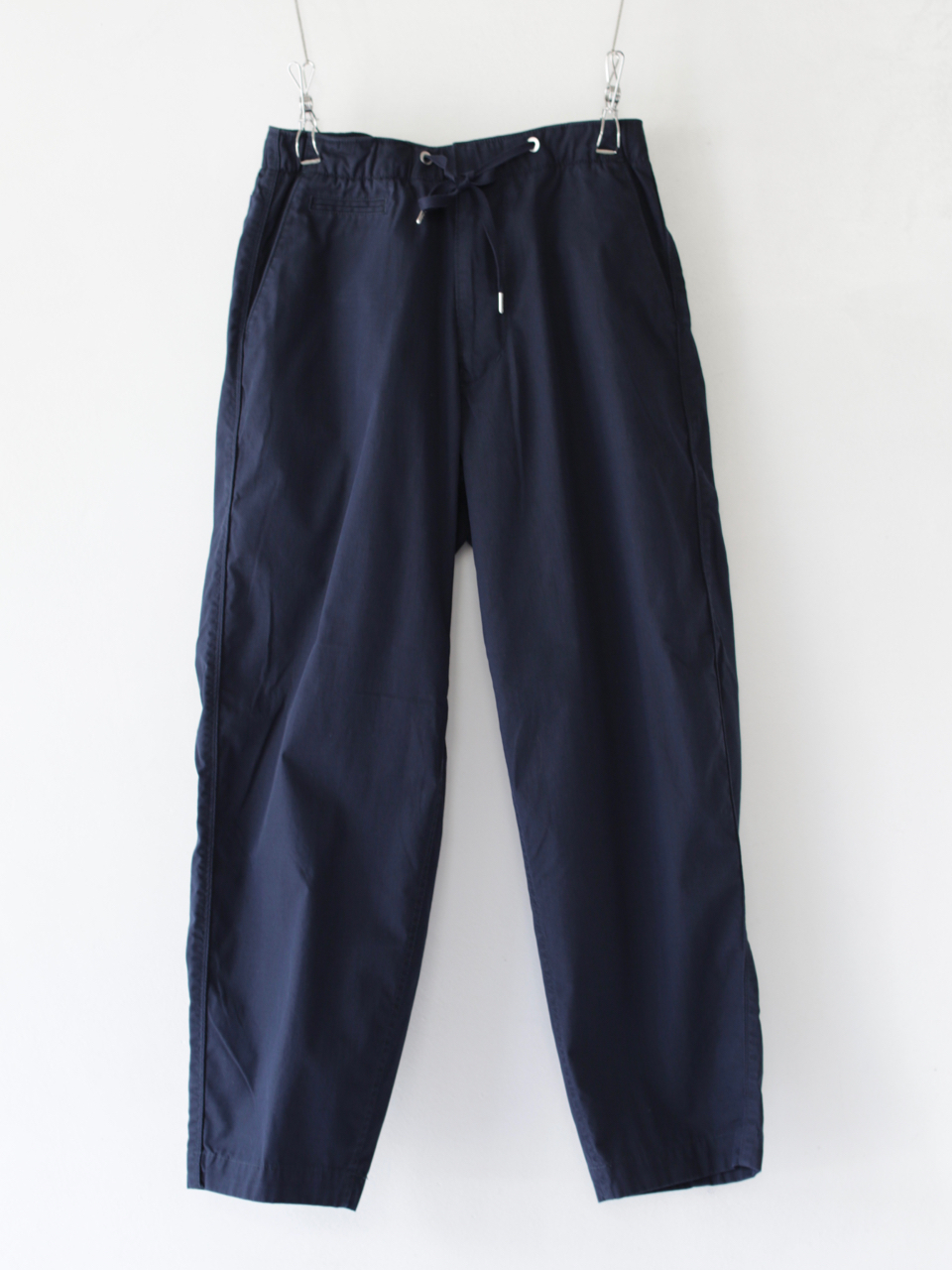 コットンナイロンのリップストップ生地を使ったシャーリングウエストパンツです。ゆったりしたイージーパンツタイプのパンツで、股上深めの膝から裾にかけテーパードしたシルエットです。