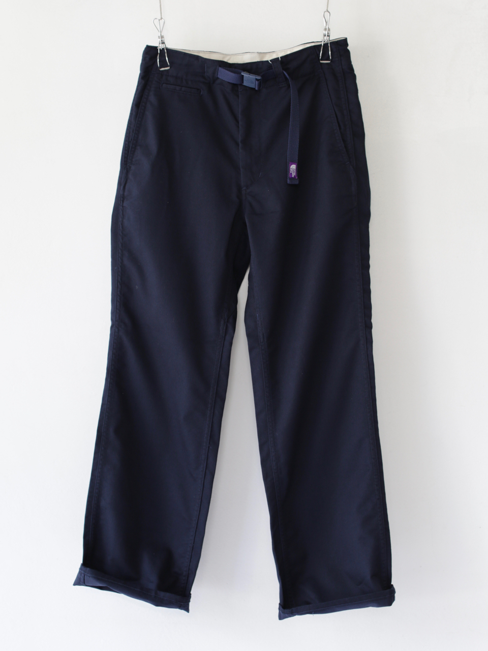 COOLMAX®のストレッチコットンツイル生地を使ったワイドパンツ。米軍のヴィンテージチノパンツを参考にシルエットを前シーズンからアップデート。ワキや内股、ヒップの縫製は裏チェーンのダブルステッチでクラシックな雰囲気です。