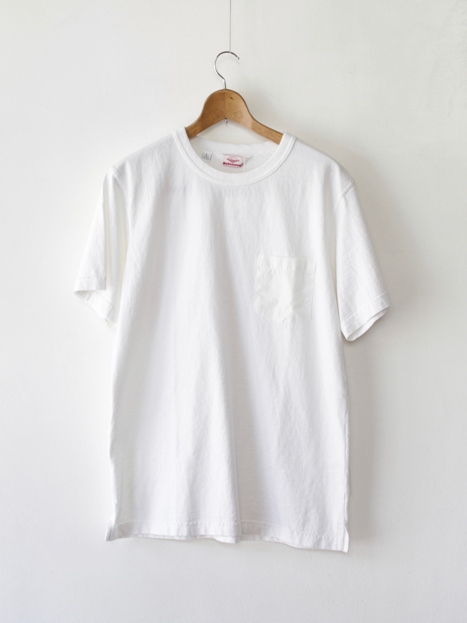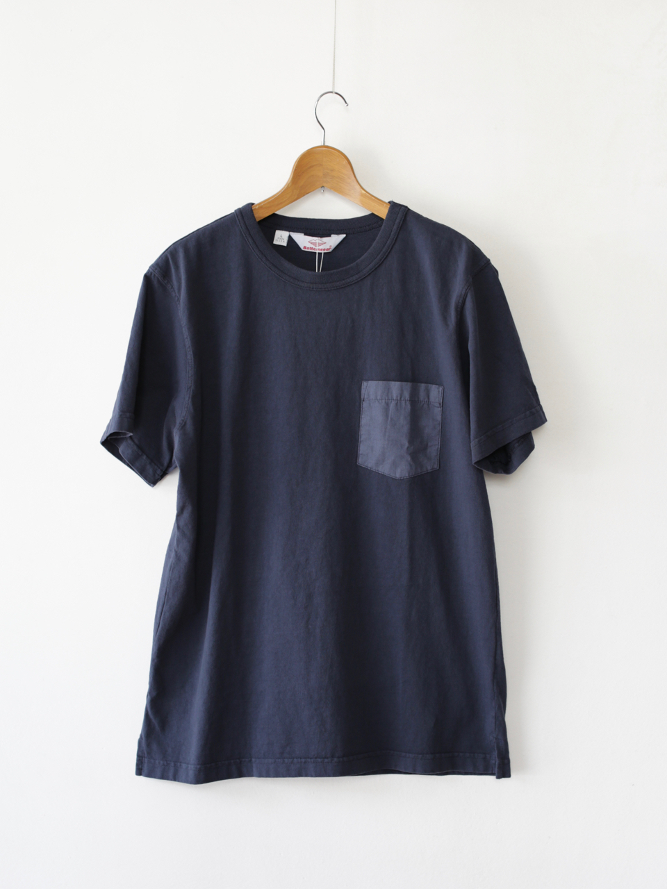 古着風な雰囲気がユニークなポケットTシャツ。7ozの厚手コットンが良い雰囲気です。