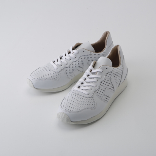 全体にパンチの空いたレザースニーカーモデルでカラーはWhiteのみの展開となります。